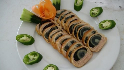 4条装皮蛋卷鸭皮卷皮蛋鸭卷皮卷酒店餐馆冷盘菜两条起拍