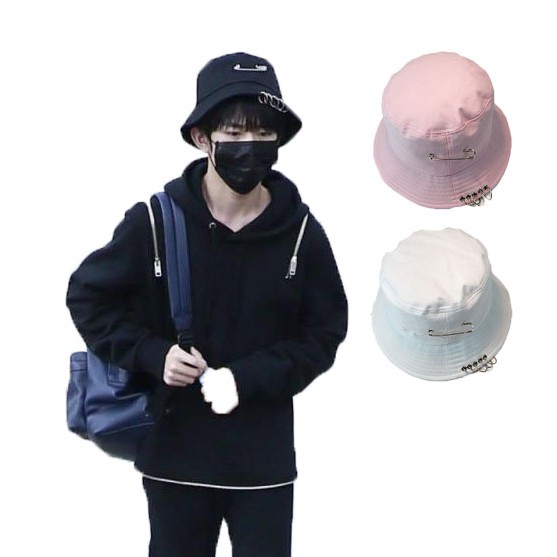 37ddo Topi Bucket Pria Wanita Aksen Peniti Warna Hitam Putih Pink Untuk Topi Shopee Indonesia