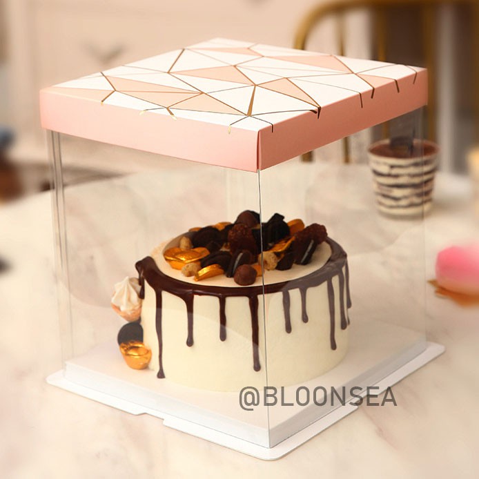 Cake Box 6 8 Inch Square Transparent Clear Container Pink Packaging Kotak Kek Bekas Cake Topper Board Pastry Baker Shopee Malaysia