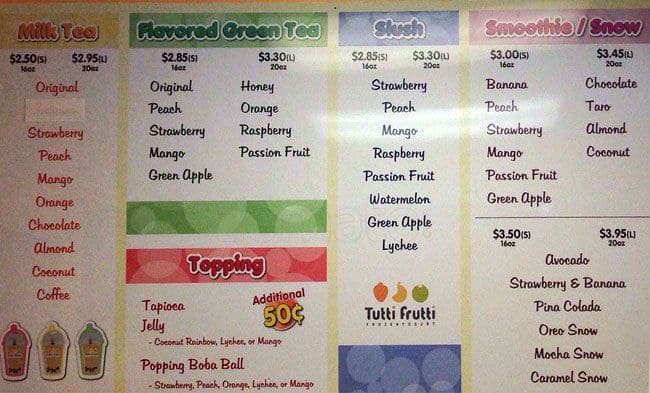 Online Menu Of Tutti Frutti Frozen Yogurt And Bubble Tea Closed Restaurant Providence Rhode Island 02903 Zmenu
