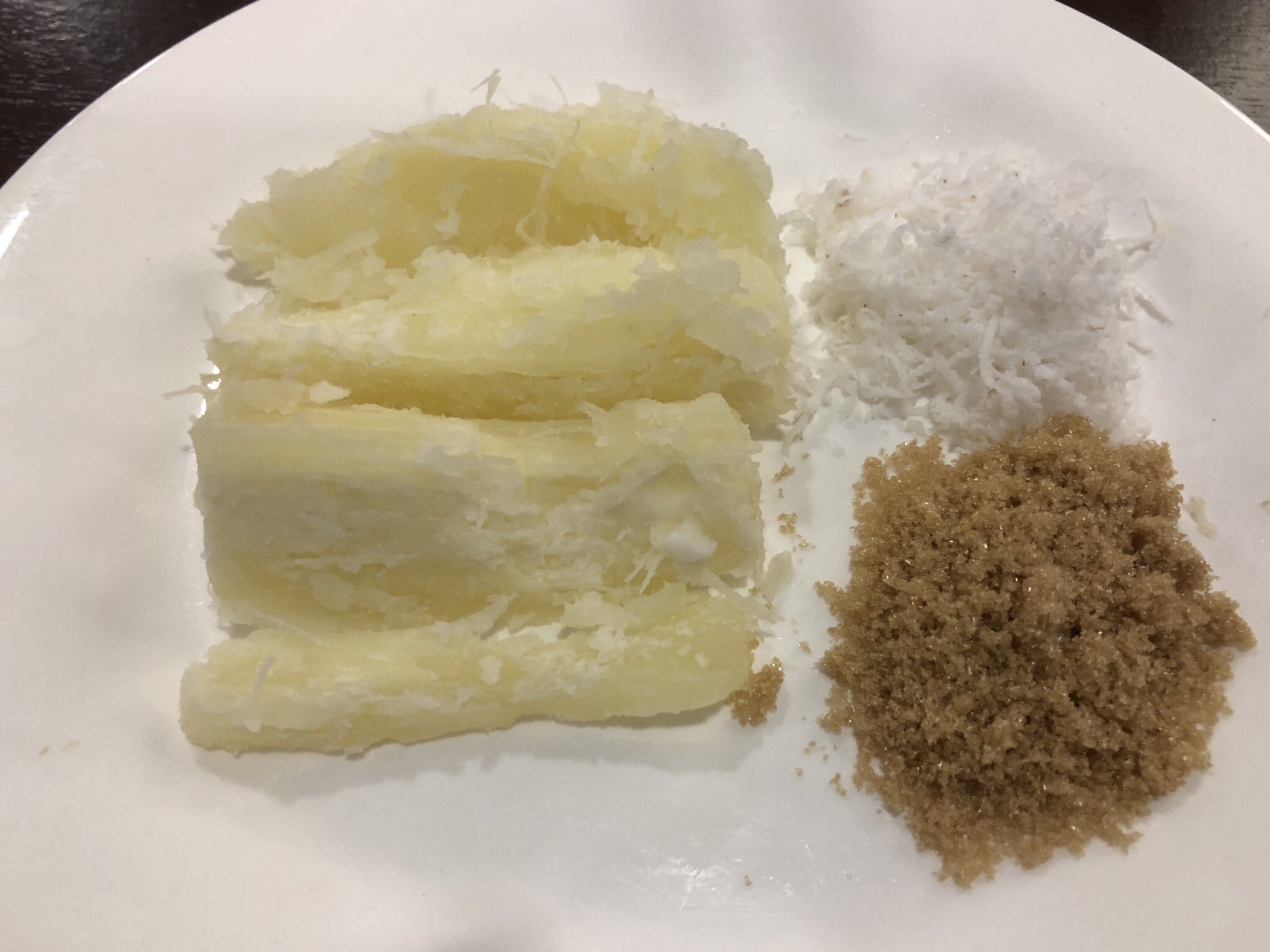 Resipi Ubi Kayu Rebus Cicah Kelapa Dan Gula Perang Oleh Aza Aaj Cookpad