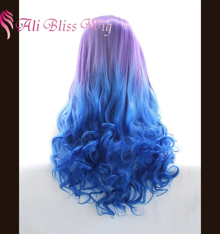 Grosir Murah 24 Inci Panjang Tahan Panas Serat Rambut Two Tone Warna Ombre Ungu Biru Bergelombang Sintetis Lace Front Wig Untuk Wanita Buy Bergelombang Sintetis Lace Front Wig Untuk Wanita Ombre