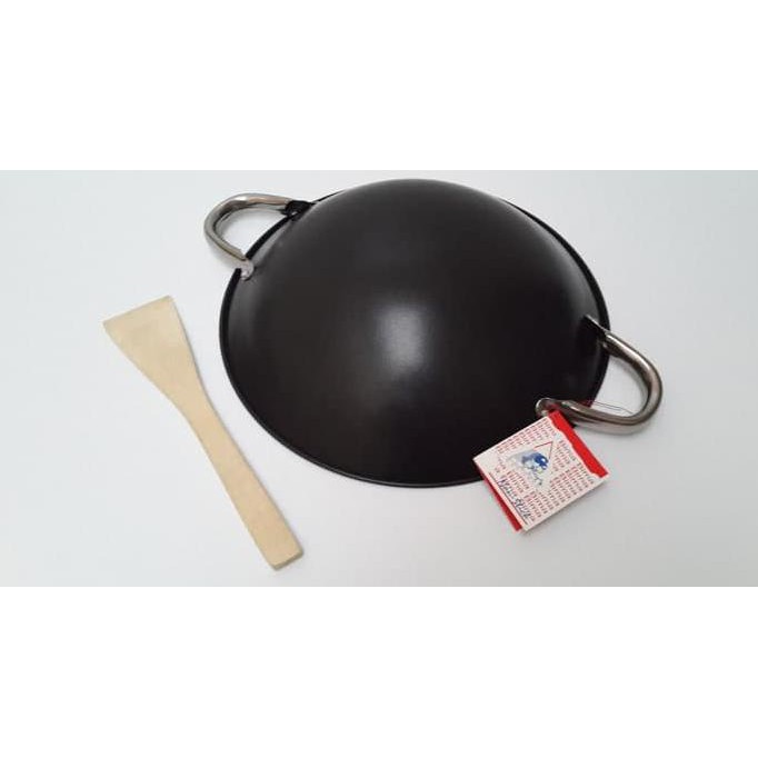 Han Wok Wajan Kuali Besi Baja Dengan Gagang Kayu 36 Cm Elevenia