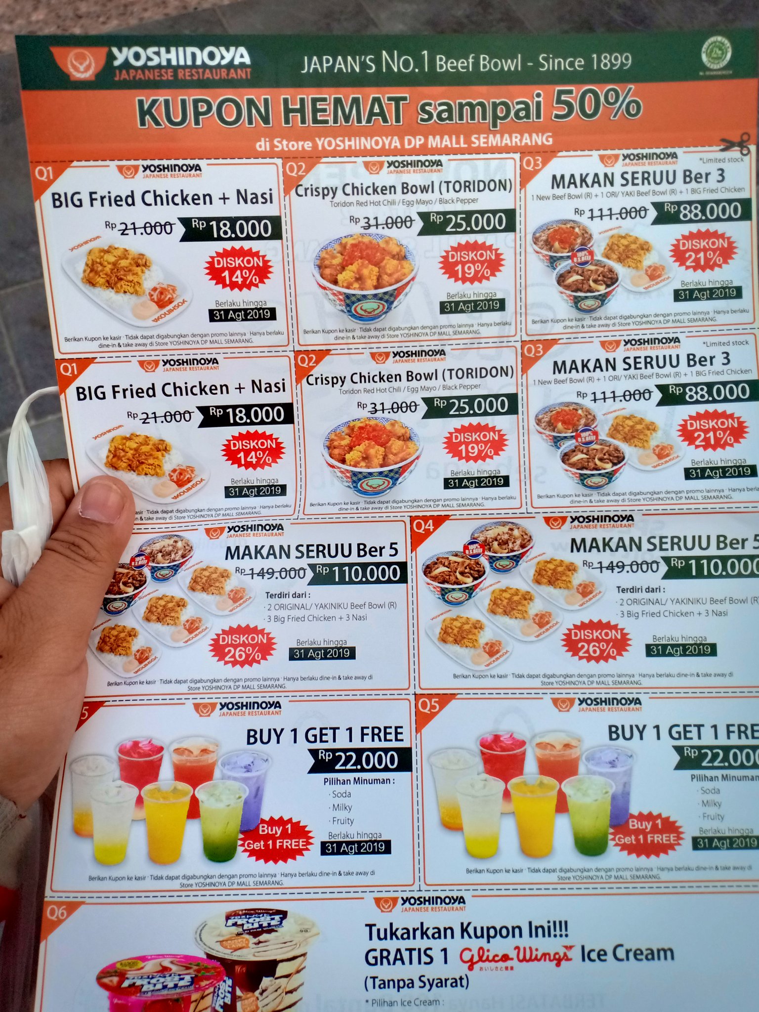 Devi Oktavia Auf Twitter Dapat Kupon Promo Yoshinoya Yang Hanya Bisa Dipakai Di Yoshinoya Dp Mall Semarang Menarik Oh Jelas Sampai Kemudian Terbaca Keterangan Masa Berlaku Sampai 31 Agustus 2019 Laah